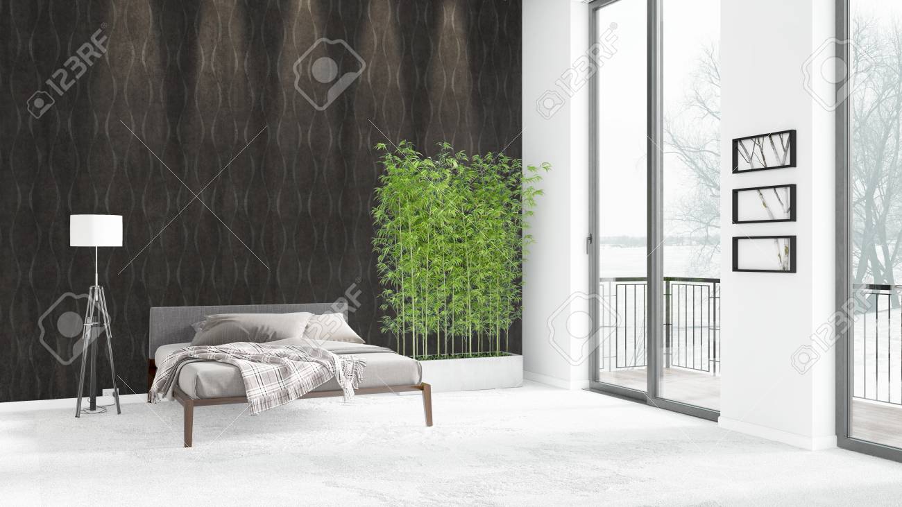 White And Grey Minimal Bedroom Stock Image Image Of Divider