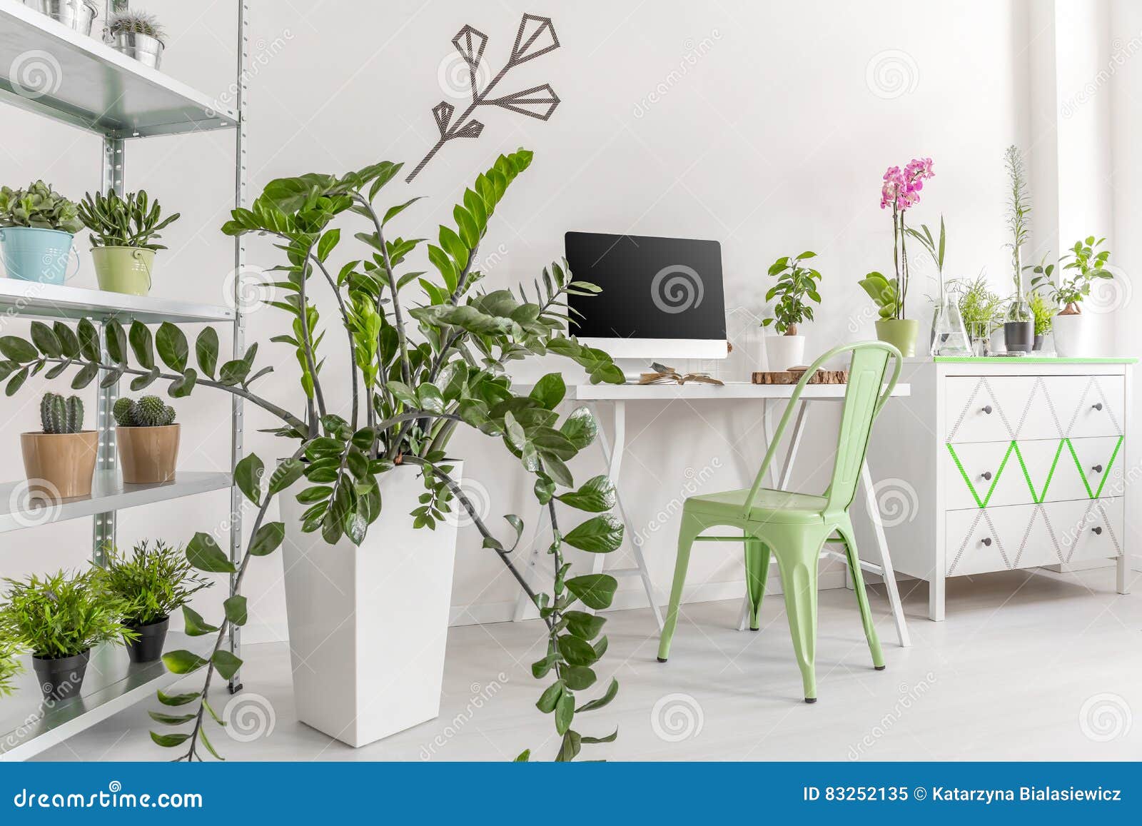 Minimalist Home Office With Indoor Plants Good Simple Sleek