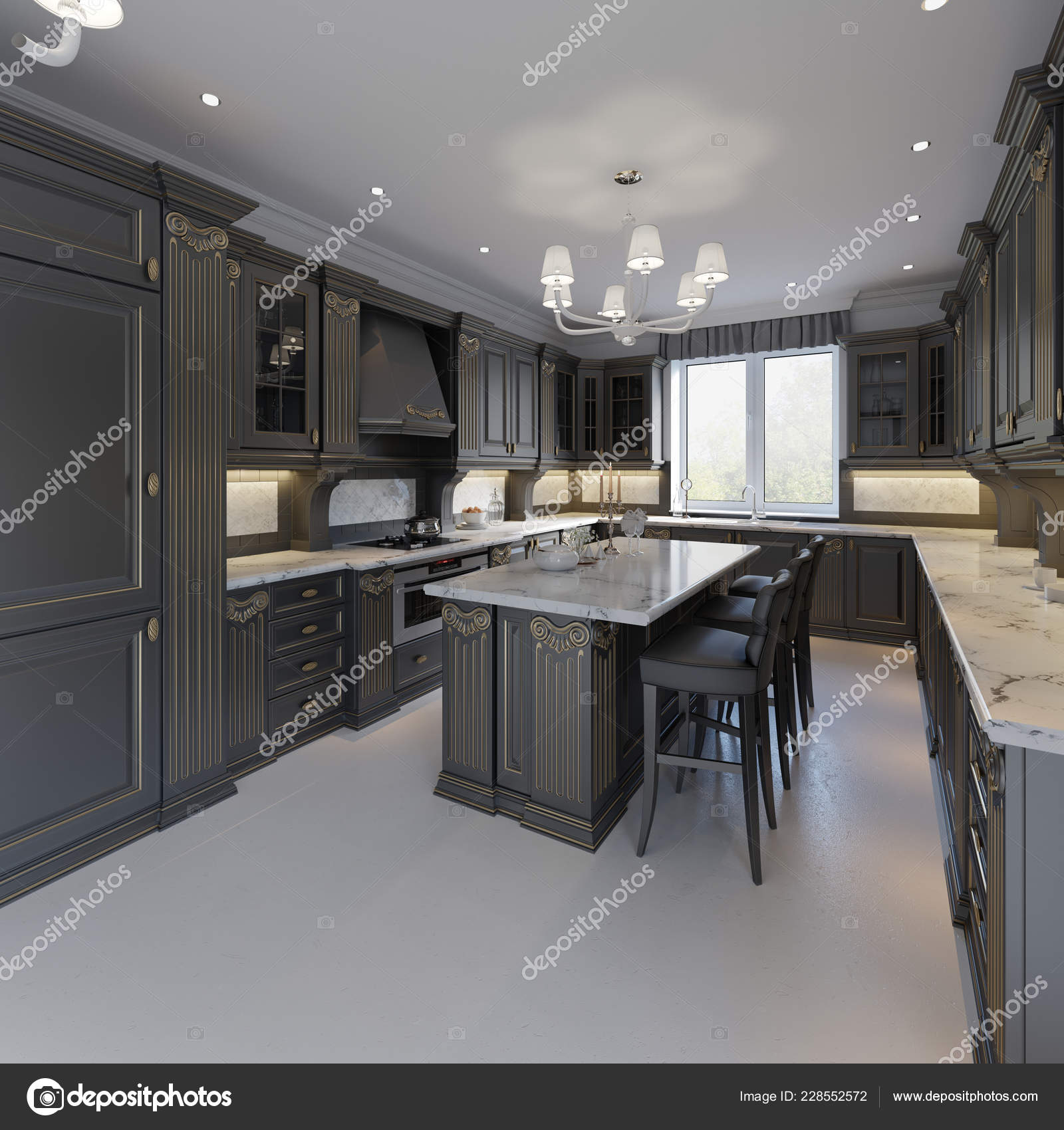 Classic Kitchen Scandinavian Minimal Interior Design Stock