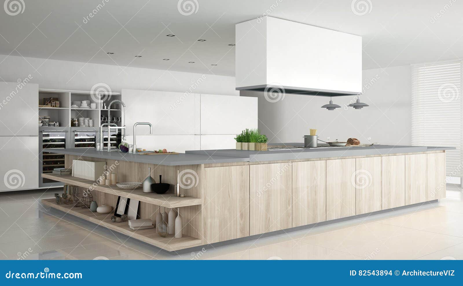 Minimalistic White Kitchen With Wooden And Gray Details Minimal