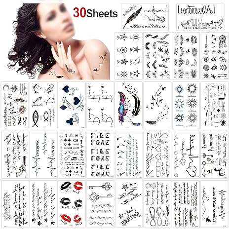 Konsait 30 Sheets Temporary Tattoos For Women Men Fake Tatoo Body Art Stickers Adult Waterproof Black Tiny Temporary Tattoo For Hand Neck Wrist Arm